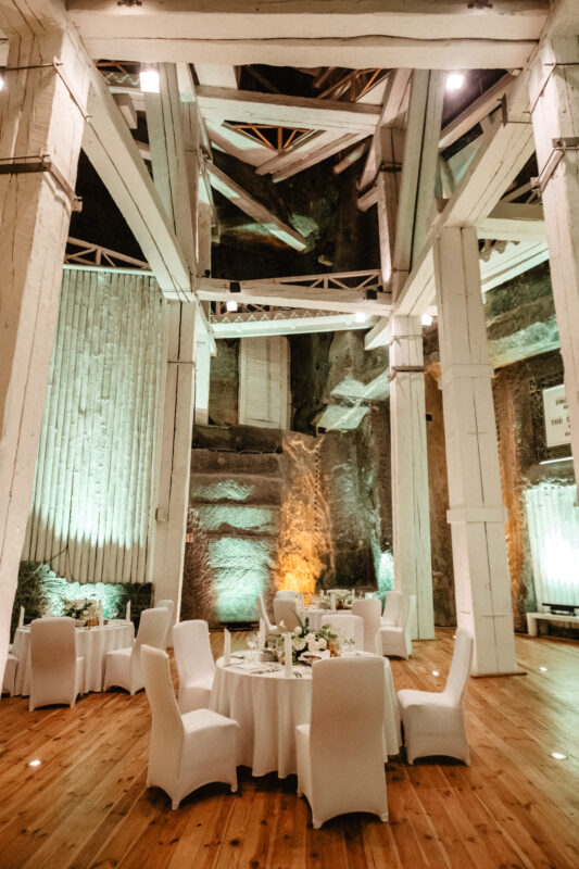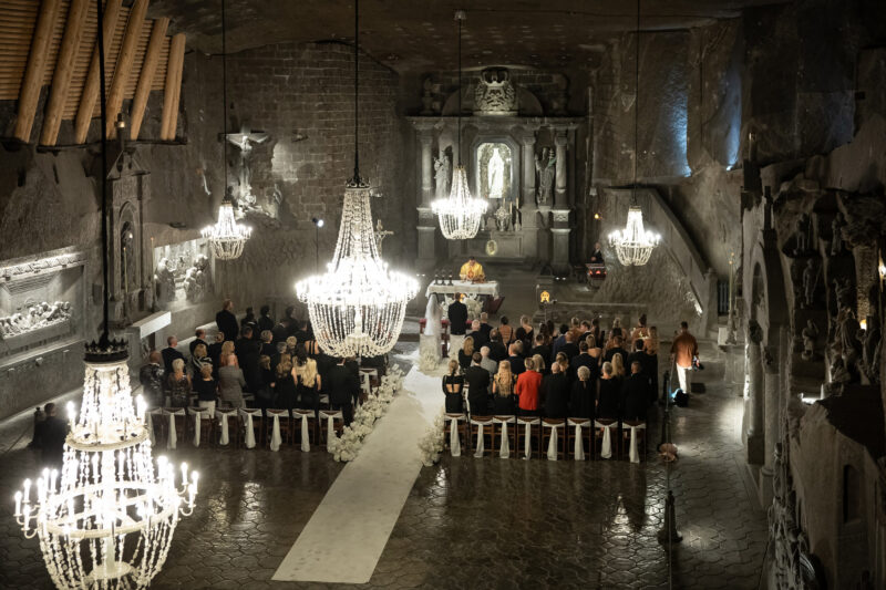 The Wieliczka Salt Mine offers chambers of various sizes, suitable for civil, Protestant, and Catholic weddings. The banquet halls host various types of parties, from intimate dinners for a dozen or so people to wedding receptions for several hundred guests.